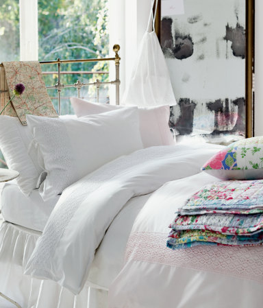 Härligt somriga bäddningar från H&M Home. Jag tycker de har riktigt prisvärda sängkläder, fina är de också. Deras sängkappor kan jag verkligen rekommendera, bra pris och i kraftig bomullscanvas!